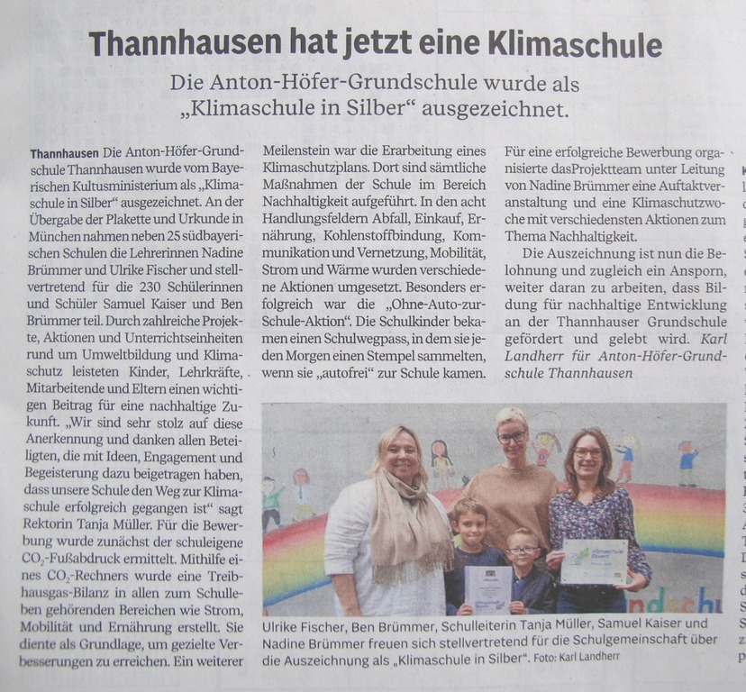 Unsere Anton-Höfer- Grundschule wurde am vergangenen Montag, 15.12.25, mit der Auszeichnung „Klimaschule in Silber“ geehrt – ein großartiger Erfolg für unsere gesamte Schulfamilie!