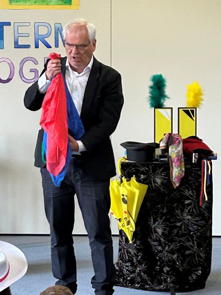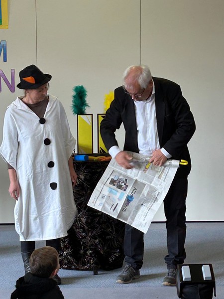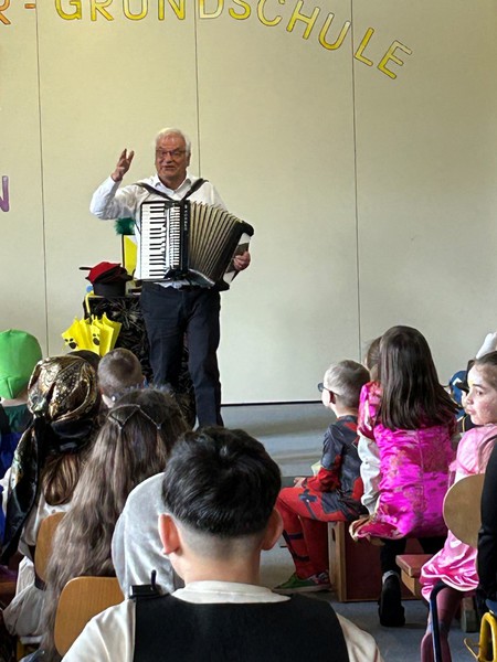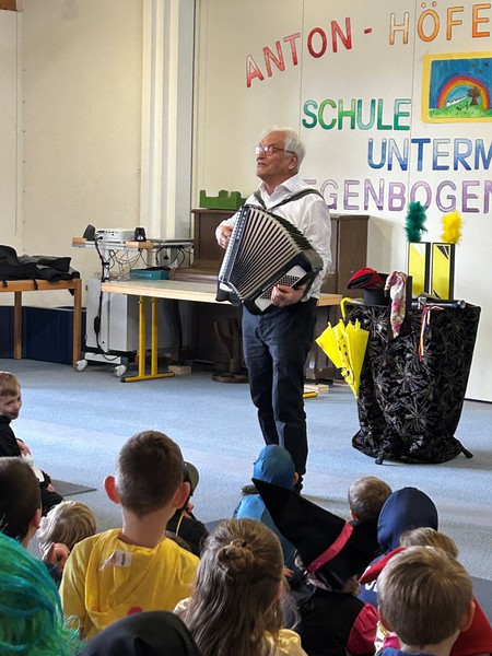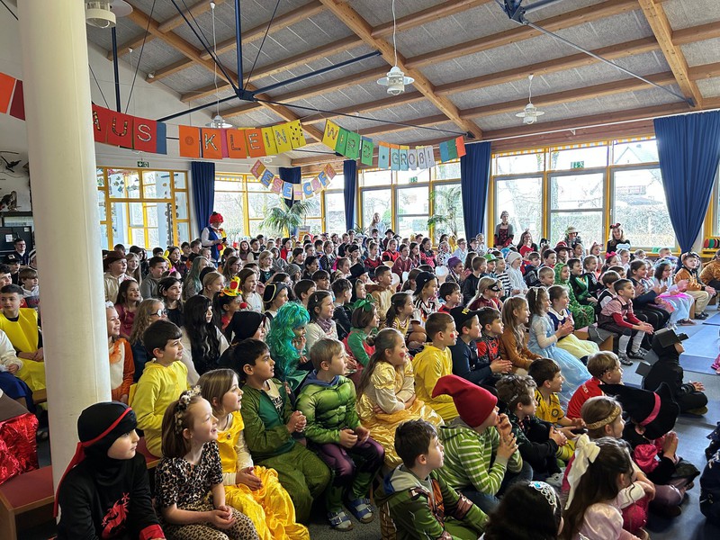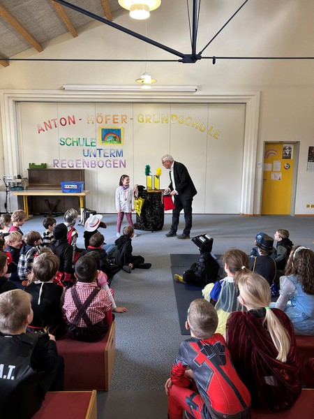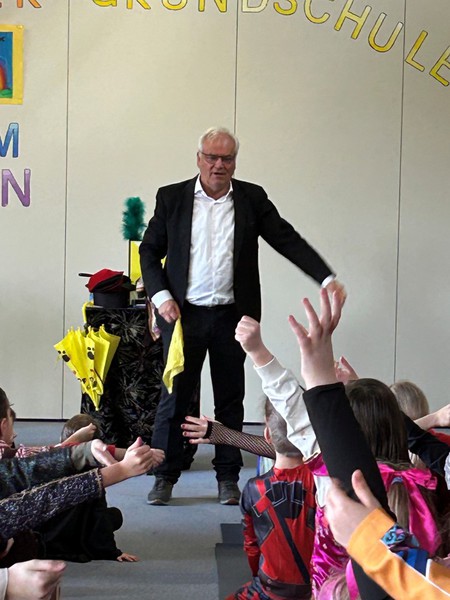 Buntes Treiben an der Anton-Höfer-Grundschule am "Rußigen Freitag". Die Musik-AG unter der DJ Georg Sonner begleiteten die Party mit tollen Liedern, bei denen die Schülerinnen und Schüler sowie die Lehrkräfte der Grundschule mitsangen oder tanzten. Dank der großzügigen Spende des Elternbeirats konnte jedes Kind einen Faschingskrapfen genießen. Nach der Pause begeisterte ein Zauberer die Kleinen und Großen mit tollen Zauberkunststücken und lustigen Einlagen … Für alle war dies ein rundherum gelungener Tag und ein guter Start in die Faschingsferien.