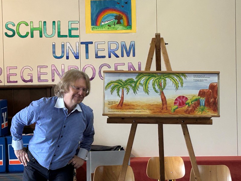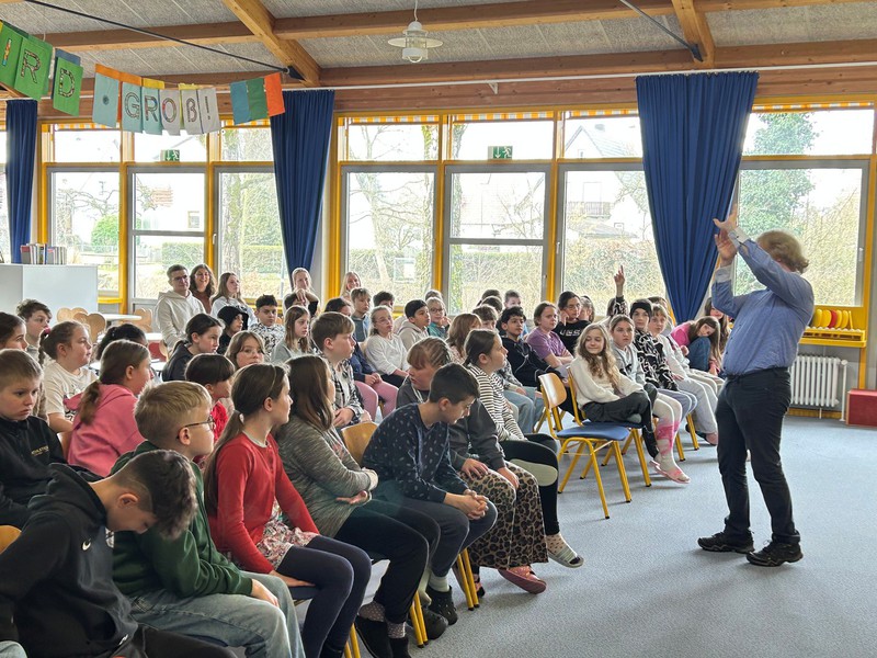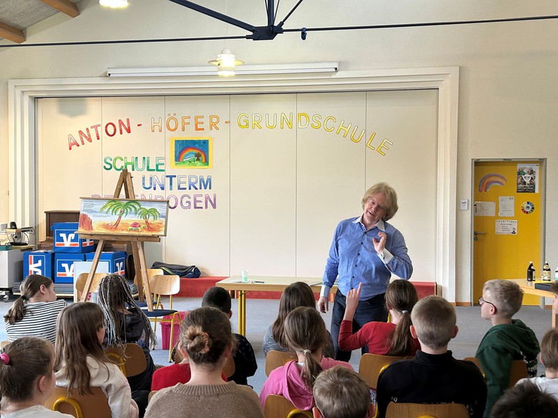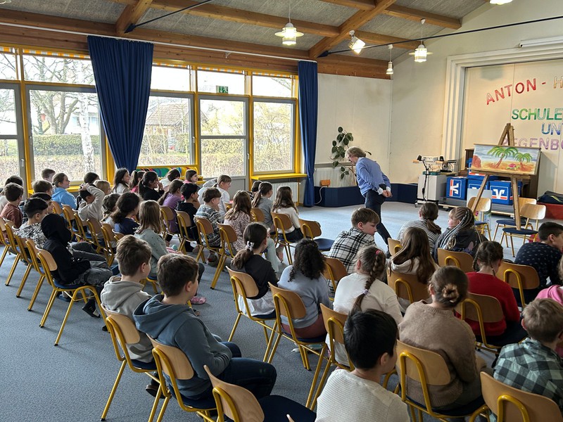 Gestern und heute hatten wir einen ganz besonderen Besuch bei uns an der Anton-Höfer-Grundschule. Andreas Dietz, ein deutscher Kinderbuchautor und Illustrator, ist ein leidenschaftlicher Künstler und Schriftsteller. Er hat mehrere Kinderbücher verfasst und diese selbst mit Aquarell und Dispersionsfarben illustriert. Alle Kinder der Schule durften den Buchhelden „Kröti, die Schildkröte“ bei seinen Abenteuern begleiten. Dabei nahm Andreas Dietz mit viel Charme, Witz und Wortgewandtheit die Schülerinnen und Schüler und auch die Lehrkräfte mit auf eine interaktive Reise durch die Bücher. Vielen Dank für diese spannenden zwei Tage an Herrn Dietz, an das „Lese-Team“ der Schule (liebevoll „Lesetanten“ genannt), die diese Aktion organisiert haben und an den Elternbeirat, der die Hälfte des Honorars gerne übernommen hat. 24.02.2026